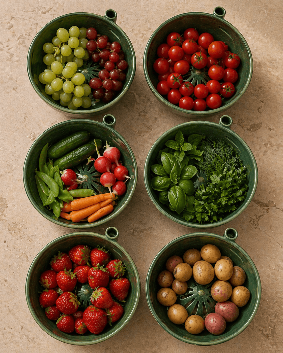 Hand-thrown stoneware, pierced at the base — made for the simple act of rinsing summer fruit. One object, made carefully, in a single colourway.